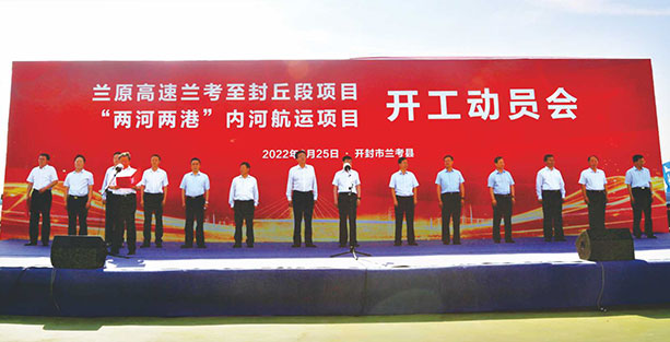 2022年6月25日上午9點,蘭原高速蘭考至封丘段、“兩河兩港”內河航運等7個基礎設施項目集中開工動員會主會場在蘭原高速蘭考至封丘段項目建設工程施工現(xiàn)場拉開帷幕。