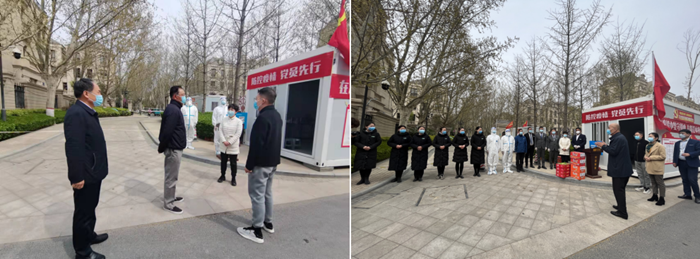 3月31日上午11:00左右,集團公司袁桂寶董事長、副總裁劉英、鴻寶物業總經理李真前往鴻園·玉蘭苑AB區外圍慰問抗疫一線同志,袁董事長悉心囑咐各位同志要注意安全,不辱使命。下午15:00,集團公司黨委書記鄧和平、總裁辦主任丁曉亞再次代表袁董事長、曉曦總為一線同志送去慰問品,并表示集團公司永遠是大家堅實的后盾,勉勵各位同志堅持到底,取得抗疫勝利。