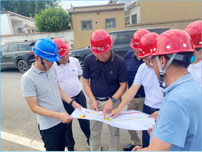 驕陽似火、烈日炎炎,袁董事長一行冒著高溫實地調研項目蘭考段全線12.3公里,聽取項目征地拆遷及清表情況匯報,深入考察項目施工進展、征地拆遷進展、土地清表情況,高度肯定了一工區項目部及項目公司團隊的辛苦付出。袁董事長指出,項目公司要集中力量解決項目征地拆遷問題,主動與政府溝通,主動想辦法解決難題,積極取得地方政府支持,與政府及施工單位三股繩擰成一股勁,大家共同努力,打贏征地拆遷攻堅戰,一步一個臺階,一點點突破困難。