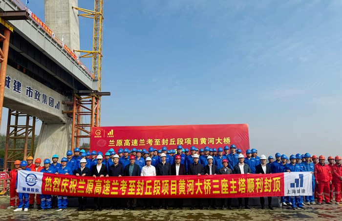 10月25日,蘭封高速項目東壩頭黃河大橋最后一座主塔——90號墩主塔順利封頂。至此,項目的控制性工程黃河大橋三座主塔提前兩個月全部封頂,標志著蘭封高速項目建設取得了重要的階段性成果,大橋建設全面進入鋼梁架設和斜拉索安裝階段。