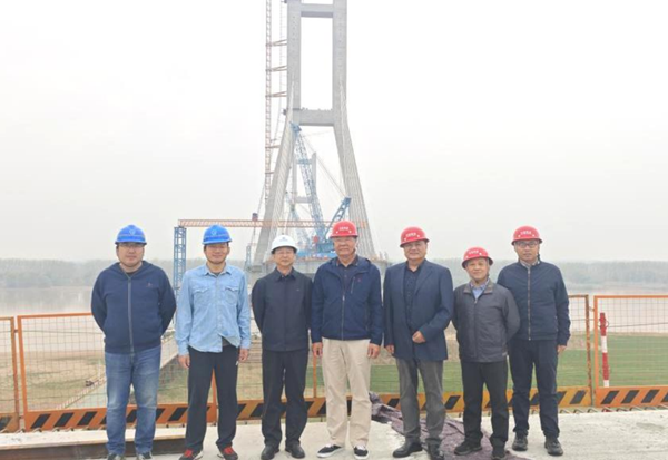 袁董事長一行先后前往蘭封高速項(xiàng)目路基工區(qū)、二工區(qū)水穩(wěn)試驗(yàn)段、黃河大橋主橋 88#墩及服務(wù)區(qū)綜合樓施工現(xiàn)場調(diào)研。袁董事長認(rèn)真查看工程進(jìn)展,與現(xiàn)場工作人員深入交流,詳細(xì)了解施工工序、質(zhì)量管控及安全保障措施的落實(shí)情況。在施工現(xiàn)場,袁董事長對(duì)項(xiàng)目當(dāng)前的施工進(jìn)度和過硬的工程質(zhì)量予以充分肯定,并特別叮囑現(xiàn)場工作人員務(wù)必時(shí)刻繃緊安全生產(chǎn)弦,嚴(yán)把質(zhì)量關(guān),在確保質(zhì)量、安全的前提下穩(wěn)步推進(jìn)工程建設(shè)。