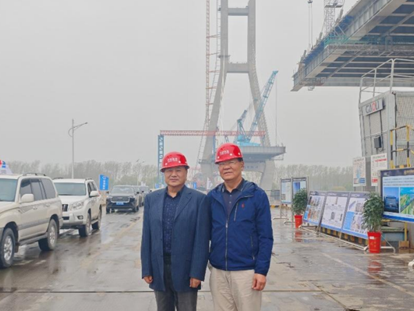 袁董事長一行先后前往蘭封高速項目路基工區、二工區水穩試驗段、黃河大橋主橋 88#墩及服務區綜合樓施工現場調研。袁董事長認真查看工程進展,與現場工作人員深入交流,詳細了解施工工序、質量管控及安全保障措施的落實情況。在施工現場,袁董事長對項目當前的施工進度和過硬的工程質量予以充分肯定,并特別叮囑現場工作人員務必時刻繃緊安全生產弦,嚴把質量關,在確保質量、安全的前提下穩步推進工程建設。