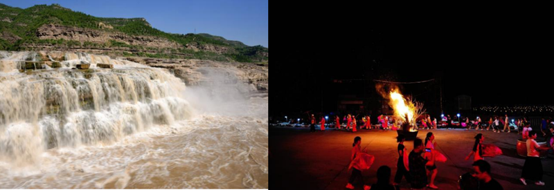 隨著大巴車的前進,一場輕松愉悅的團隊破冰行動便熱烈開 場。隨著延安知識問答、自我介紹等互動環節的推進,原本因部 門壁壘或崗位差異帶來的些許陌生感迅速消融,為后續幾天的集 體學習、深入交流和團隊協作奠定了堅實的信任基礎。 13:00,研學團抵達壺口瀑布,滔滔黃河水自寬闊的河床驟 然收束,空氣中彌漫著細密的水霧。奔騰咆哮的瀑布使成員們領 略了母親河的磅礴氣勢,感受中華民族自強不息的精神底蘊。夜 幕降臨,研學團入住知青文苑酒店。晚餐后,一場別開生面的篝 火晚會在廣場熱烈開場。成員們踏著鼓點與當地群眾共扭秧歌,在歡聲笑語中深切體會革命老區的淳樸民風。